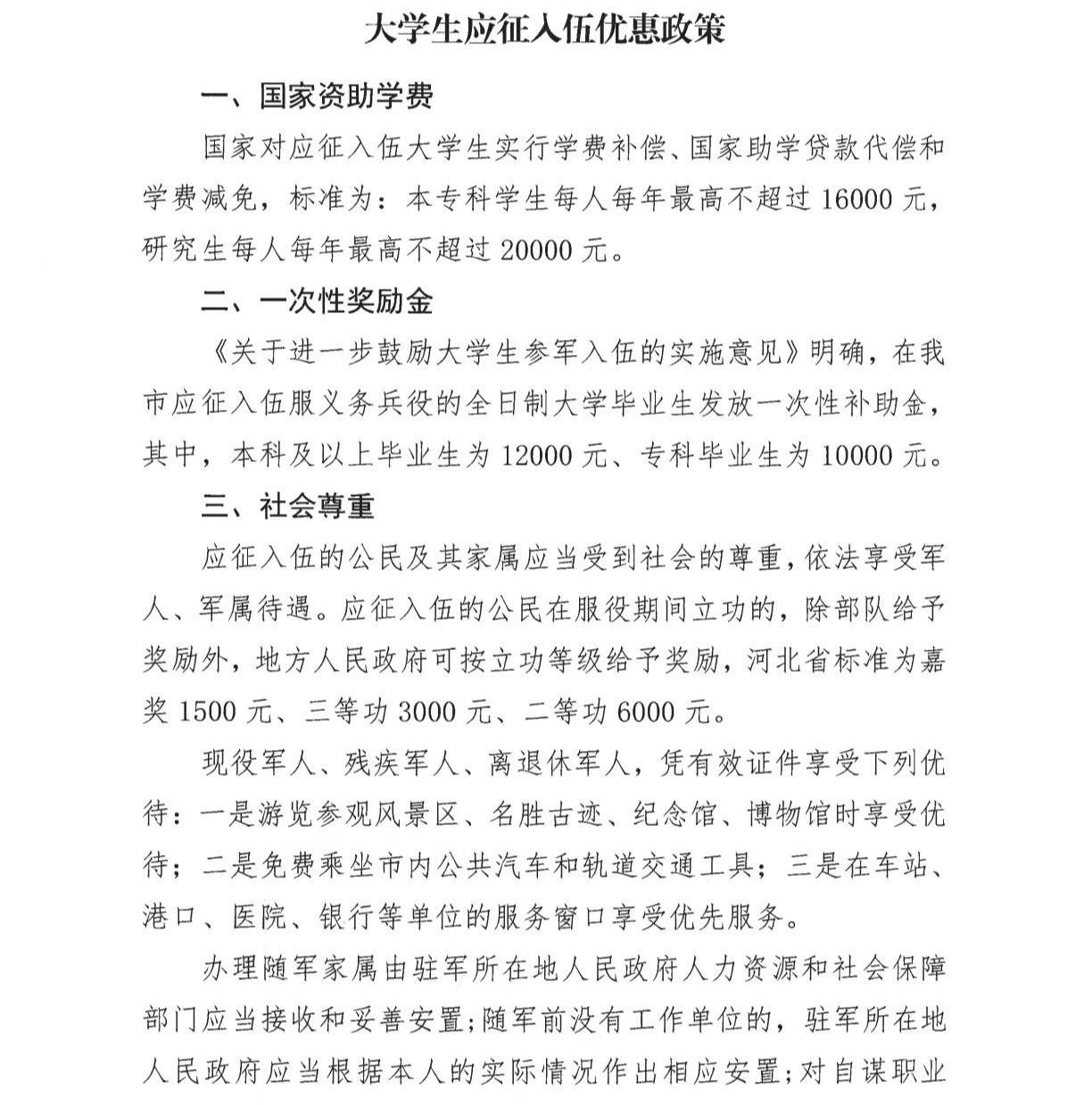 大学生应征入伍优惠政策