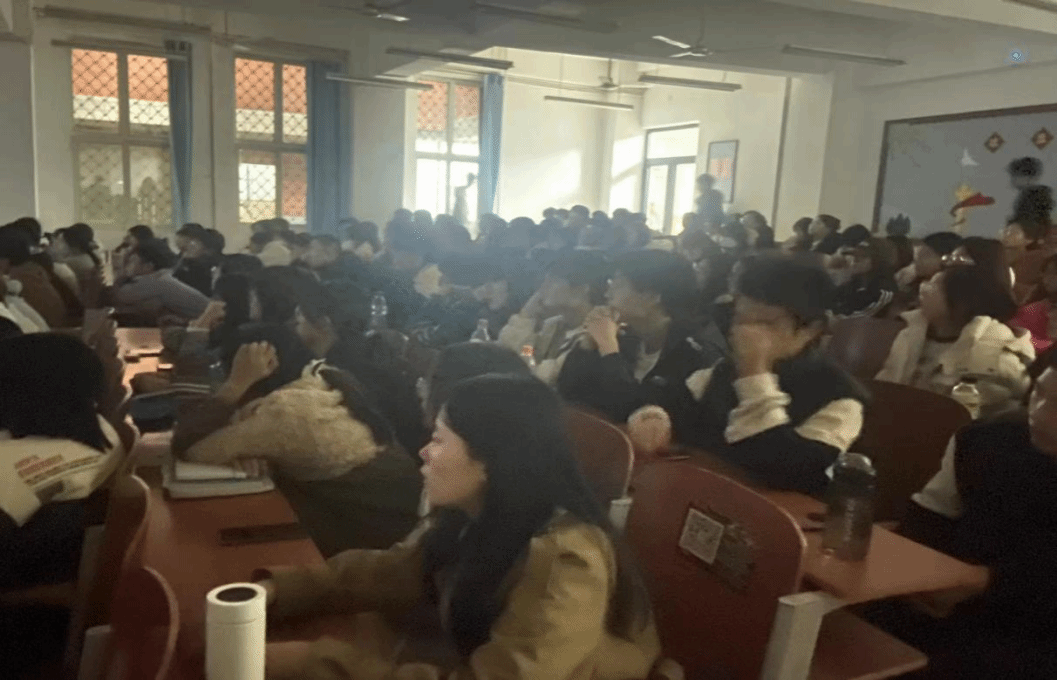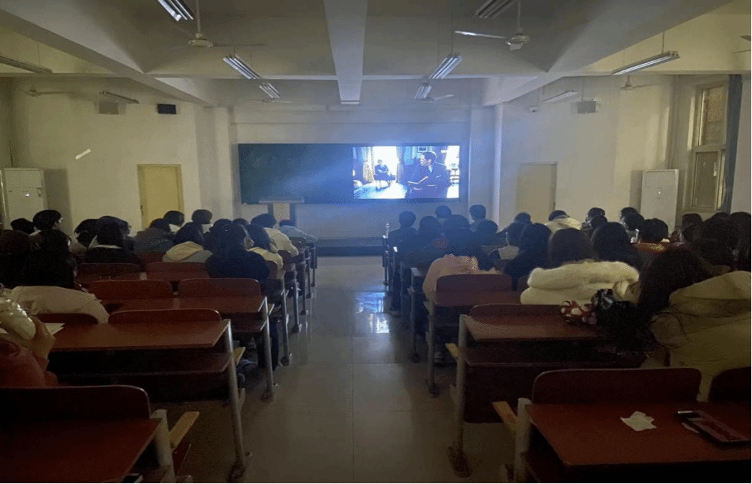 活动开始学生们有序入座观看电影