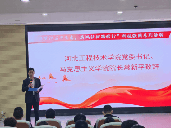 校党委书记、马克思主义学院院长常新平首先为本次活动开幕式致辞,他为在座师生介绍了科技创新在发展新质生产力及助推经济高质量发展中的关键地位和作用。常书记还勉励青年学子务必要着眼长远、夯实基础、练就本领,不断增强解决科学问题的能力,更加自觉地担负起时代赋予青年的光荣使命,为加快实现高水平科技自立自强贡献智慧和青春力量。